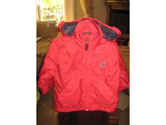 0718 TIMBERLAND μπουφανακι με κουκουλα αδιαβροχο, κοκκινο, σε αριστη κατασταση για παιδακι 18 μηνων.