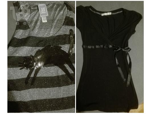 Φεύγω στο εξωτερικό και θέλω να "ξεφορτωθώ" σύντομα τα περισσότερά μου ρούχα, παπούτσια και αξεσουαρ! Πολλά από αυτά εντελώς αφόρετα, με τα καρτελάκια ή χωρίς, κάποια από αυτά ελαφρώς μεταχειρισμένα και κάποια λίγα, περισσότερο. Παρακαλώ δείτε παρακάτω περαιτέρω λεπτομέρειες για το κάθε κομμάτι. ***ΠΑΝΩ ΑΠΟ 15 ΣΕΤ ΝΑ ΔΙΑΛΕΞΕΤΕ*** :) Τα σετ πωλούνται αυτούσια, χωρίς προσθέσεις από άλλα σετ, μπορώ όμως ωστόσο κατόπιν συνεννόησης να αφαιρέσω κάποιο κομμάτι που δεν σας κάνει για να βγουν λιγότερα τα μεταφορικά (πχ, μπότες που δεν σας κάνουν στο νούμερο και είναι βαριές) ΧΩΡΙΣ όμως να επηρεαστεί η τιμή.♡ Αυτό το σετ περιλαμβάνει: ♡ Πανέμορφο Τζιν παντελόνι, με σχέδια λουλούδια, νούμερο 34, αφόρετο ♡ Καλό μινι φόρεμα στραπλες με σατέν χοντρή κορδέλα για να δένει στην μέση, με λεοπάρ φόδρα και μαύρη διαφάνεια από πάνω, μάρκας BSB, Small, ελαφρώς μεταχειρισμένο ♡ Φόρεμα μαύρο basic, κλασικό, αμάνικο από χοντρό ύφασμα, Small, φορεμένο μια φορά ♡ Μπλουζάκι αμάνικο ριγέ μεταλλιζέ με σχέδιο γάτα από παγέτες, Small, φορεμένο μια φορά ♡ Μπλούζα κοντομάνικη ελαστική, με V ντεκολτέ και κορδελάκι σατεν κάτω από το στήθος, Small-Medium, ελαφρώς μεταχειρισμένη ♡ Μπλουζάκι μαύρο μακρυμάνικο cropped (κοντό) με στάμπα ασπρόμαυρη, Small, αφόρετο ♡ Μπλούζα casual κοντομάνικη φαρδιά, με γράμματα, με λάστιχο κάτω, One Size (s/m), αφόρετη ♡ Δαχτυλίδι φαρδύ με στρας, One Size (s/m), αμεταχείριστο ΟΛΑ ΜΑΖΙ 39 €! Στέλνω με αντικαταβολή την επόμενη ημέρα! (Τα ρούχα είναι όλα καθαρά και πλυμένα, ωστόσο επειδή έχουμε γατούλες, και ο όγκος των ρούχων είναι πολύ μεγάλος, μερικές φορές ίσως μας ξεφύγει κάτι -ευχαριστώ για την κατανόηση!)