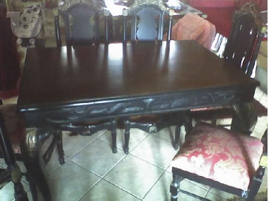 τραπεζαρια με σκαλισμα λιονταρισαι ποδια υπαρχη και ο μποθφεσ με κα8ρευτη
