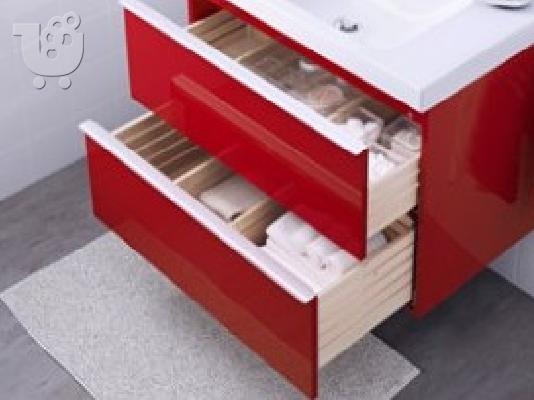 βάση νιπτήρα με 2 συρτάρια GODMORGON (Πλάτος: 80 cm, Βάθος: 47 cm, Ύψος: 58 cm) και , BRAVIKEN μονός νιπτήρας (Πλάτος: 82 cm, Βάθος: 49 cm, Πάχος: 10 cm)