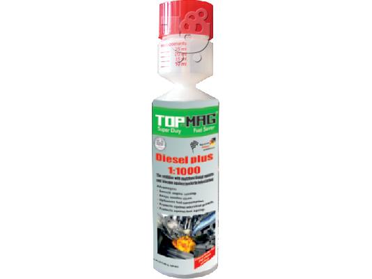 ΑΝΤΙΒΑΚΤΗΡΙΑΚΟ - ΕΝΙΣΧΥΤΙΚΟ - ΚΑΘΑΡΙΣΤΙΚΟ ΠΕΤΡΕΛΑΙΟΥ ΚΑΤΑ ΤΗΣ ΜΥΚΗΤΟΛΑΣΠΗΣ - ΜΟΥΡΓΑΣ.\r\nTOP-MAG DIESEL PLUS 1:1000 \r\nΤοποθετείτε πάντα μαζί με το καύσιμο σε αναλογία 1.1000\r\n\r\n\r\nΤΙΜΗ 7.90 ευρώ.\r\n•Ισχυρή αντιβακτηριακή προστασία κατά της μυκητολάσπης.\r\n• Βελτιωτικό κετανίων <αύξηση 3 έως 4 μονάδες.>!!! \r\n• Για πετρέλαιο με περιεκτικότητα σε Bio-diesel έως 20%\r\n• Με αντιβακτηριακά πρόσθετα κατά βακτηρίων και μυκητών στο πετρέλαιο. \r\n• Καθαρίζει τα μπέκ ψεκασμού και την πόμπα υψηλής πίεσης.\r\n• Μειώνει την κατανάλωση καυσίμων. Με σταθεροποιητές καυσίμου.\r\n• Προσφέρει καθαρή καύση και μείωση των εκπομπών καυσαερίου. \r\n• Εύκολη εκκίνηση σε χαμηλές θερμοκρασίες. \r\n• Αυξάνει την ισχύ του κινητήρα \r\n• Σταματά το κάπνισμα του κινητήρα .Δεν αφήνει κατάλοιπα..\r\n• Καθαρίζει και διατηρεί καθαρό το κύκλωμα καυσίμου .\r\n• Προστατεύει από την διάβρωση το ρεζερβουάρ και το χώρο καύσης στο εσωτερικό του κινητήρα.\r\n• Άμεσα αποτελέσματα. Ανακουφίζει το φίλτρο σωματιδίων αιθάλης < DPF>\r\n\r\nΧΡΗΣΗ\r\n250 ml αρκούν για 250 λίτρα πετρελαίου με ενσωματωμένο δοσομετρητή.!! Διατίθεται και σε οικονομική συσκευασία \r\n1 λίτρο για 1.000 λίτρα πετρελαίου. Συμπυκνωμένο προϊόν. \r\nΠιστοποιημένο Γερμανικό προιόν με . DIN ISO 9001.2008\r\nΜεταφορικά έως 2 κιλά μόνο 3.00 ευρώ με κούριερ πανελλαδικά.\r\nwww.top-mag.gr τηλ. 2314.315373