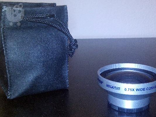 Φακός ευρυγώνιος Tiffen ΟΛΟΚΑΙΝΟΥΡΙΟΣ αχρησιμοποίητος .Αγοράστηκε για λάθος διάμετρο μηχανής .Είναι σαν καινούριος και η τιμή του είναι 69$ . http://www.amazon.com/Tiffen-MegaPlus-Digital-Camera-mounting/dp/B00005IBSQ Screws onto cameras with 43mm thread 4 elements, glass 0.75x actual magnification Allows the attachment of a 67mm filter in front To mount: With your camera lens facing you, simply screw the male threads clockwise onto the threaded camera lens (or lens mount, if applicable). Tighten until fully secure, but do not over tighten.