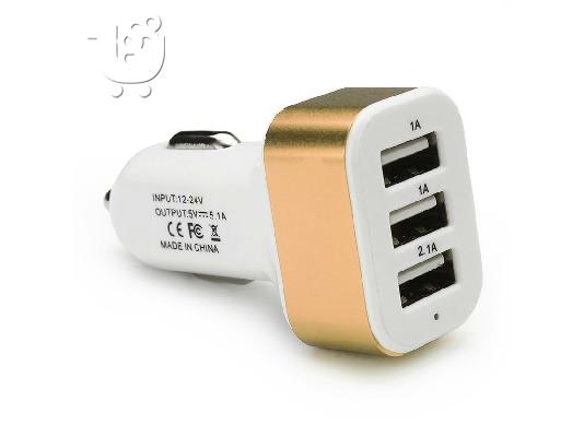 Φορτιστής με 3 USB σε πρίζα αναπτήρα χρυσό χρώμα 12-24V Κωδικός NOKOKO KO-14\r\n\r\n\r\n\r\nΚωδικός KO-14\r\n3 θύρες USB\r\n1A, 1A και 2.1Α\r\nInput 12-24V / Output 5VDC\r\nΦωτιζόμενο\r\nΚάνει και για iPad