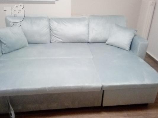 Γωνιακού καναπές που γίνεται κρεβάτι,γκρι(ανοιχτό) χρώματος με αποθηκευτικό χωρο