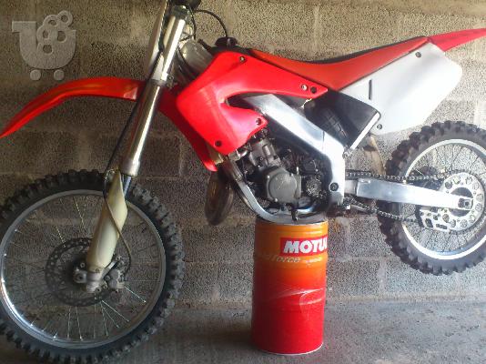 Η μηχανή είναι σε υπερ-άριστη κατάσταση, αγορασμένη πέρυσι τον Νοέμβριο και η χρήση της μηχανής είναι καθαρά για χόμπι. Είναι 2001μοντέλο με σκελετό αλουμινίου. Μετά από κάθε χρήση γινόταν καθαρισμός του φίλτρου αέρος και γρασοσπρέϋ αλυσίδας. Η μηχανή διαθέτει: τιμόνι factory ειδικά σχεδιασμένο για εύκολο στρίψιμο, καινούργια γρανάζια μπρος και πίσω μαζί με αλυσίδα, εξάτμιση pro circuit ολόκληρη από μπροστά. Στην μηχανή έχει γίνει ολόκληρο service στις μπροστινές μπουκάλες και στην πίσω ανάρτηση. Έχουν αλλαχτεί τα ρουλεμάν του πίσω ψαλιδιού και της πίσω ανάρτησης (εκεί που κουμπώνει) και οι αναρτήσεις έχουν ρυθμιστεί σωστά. Η πίσω δισκόπλακα έχει αλλαχτεί, είναι ιταλική braking, έχει αλλαχτεί το πιστόνι wiseco, αλλαγμένα o-ring μπροστά στην εξάτμιση, έχει γίνει ολόκληρος καθαρισμός στο καρμπυρατέρ, λάδι στο σασμάν Agip 15w-50 για μαλακές ταχύτητες και αλλαγή αντιψυκτικού υγρού. Τα τακάκια μπρος και πίσω έχουν αλλαχτεί με άριστης ποιότητας, το μπουζί επίσης με ngk ιριδίου και τα λάστιχα είναι ολοκαίνουργια michelin 80/90 μπροστά και 100/90 πίσω. Το λάδι που χρησιμοποιείται για μίξη στην βενζίνη είναι μόνο motul 710 και έχει γίνει γενικός έλεγχος σε όλο το μηχανάκι. Υπάρχουν τα χαρτιά για την επιβεβαίωση του αριθμού κινητήρα και του πλαισίου και η ημερομηνία αγοράς. Περισσότερες πληροφορίες στο τηλέφωνο: 6977535777 και η τιμή είναι αρκετά συζητήσιμη.