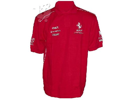 Για τους λάτρεις της FORMOULA 1 Η γνήσια μπλούζα της ομάδας FERRARI Μία πανέμορφη και πολύ κομψή κοντομάνικη μπλούζα τύπου polo Μέγεθος : L Χρώμα: κόκκινο της Ferrari Σύνθεση: βαμβακερό ύφασμα Το λογότυπο από το έμβλημα της Ferrari βρίσκεται στο ύψος του στήθους περίπου. Χορηγοί και λογότυπο από το έμβλημα της Ferrari είναι κεντημένα στο αριστερό μανίκι.