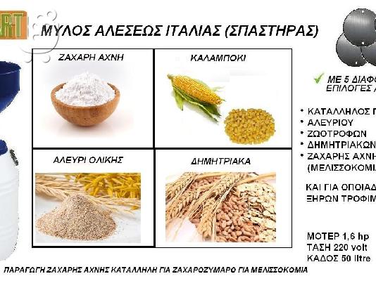 ROKART ΤΖΙΒΙΛΟΓΛΟΥ ΙΕΡΑ ΟΔΟΣ 12 ΑΘΗΝΑ ΤΗΛ.210 3469158- 6974962048 www.rokart.gr ΗΛΕΚΤΡΙΚΟΙ ΑΛΕΥΡΟΜΥΛΟΙ ΣΠΑΣΤΗΡΕΣ ΖΑΧΑΡΗΣ ΑΧΝΗΣ ΙΤΑΛΙΑΣ • ΚΑΤΑΛΛΗΛΟΣ ΓΙΑ ΠΑΡΑΓΩΓΗ • ΑΛΕΥΡΙΟΥ • ΖΩΟΤΡΟΦΩΝ • ΔΗΜΗΤΡΙΑΚΩΝ • ΖΑΧΑΡΗΣ ΑΧΝΗΣ (ΜΕΛΙΣΣΟΚΟΜΙΑ) • ΚΑΙ ΓΙΑ ΟΠΟΙΑΔΗΠΟΤΕ ΑΛΕΣΗ ΞΗΡΩΝ ΤΡΟΦΙΜΩΝ ΔΙΑΘΕΤΗ 4η5 ΔΙΑΦΟΡΕΤΙΚΕΣ ΣΙΤΕΣ ΜΟΤΕΡ 1,6 hp ΤΑΣΗ 220 volt ΚΑΔΟΣ 50 litre ΚΑΤΑΛΛΗΛΟΣ ΓΙΑ ΖΑΧΑΡΗ ΑΧΝΗ (ΜΕΛΙΣΣΟΚΟΜΙΑ) ΔΕΙΤΕ VIDEO https://www.youtube.com/watch?v=i96hzJACmdc επισκεφτείτε την ιστοσελίδα μας www.rokart.gr *100% ΟΙ ΚΑΛΥΤΕΡΕΣ ΤΙΜΕΣ ΤΗΣ ΑΓΟΡΑΣ* ΑΠΟΣΤΟΛΗ ΣΕ ΟΛΗ ΤΗΝ ΕΛΛΑΔΑ