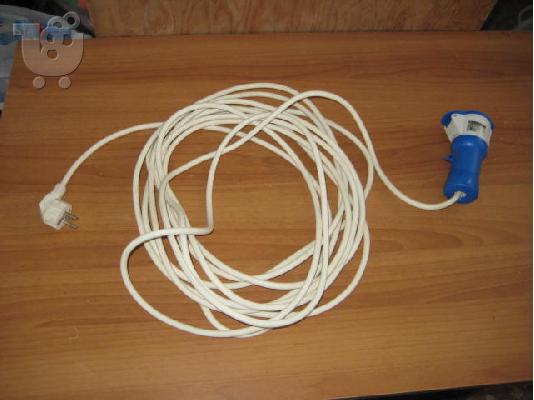 Καλώδιο παροχής ρεύματος μήκους 10 μέτρων μέ τήν πρίζα καί τήν φίσσα σύνδεσης γιά τό τροχόσπιτο εντελώς καινούργια,αχρησιμοποίητη.