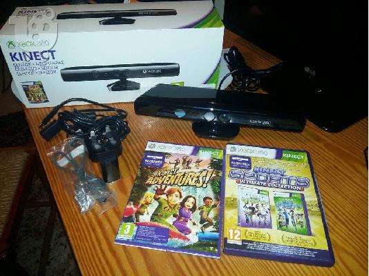 Kinect για xbox 360 με 2 παιχνιδια kinect adventures και kinect sports για τρελα παιχνιδιαα! Αντε να εχω παιξει 3-4 φορες.Δινεται με ολα τα περελκομενα οπως την αγορασα!!