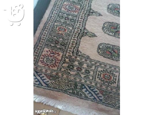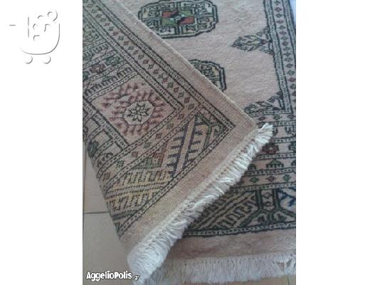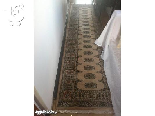 Πωλείται μάλλινη χειροποίητη μπουχάρα διάδρομος σε μπεζ χρώμα με μπλε, μαυρες και κοκκινες πινελιές. Διαστάσεις 321x083. Πολύ πυκνη 360.000 κόμποι ανα τ.μ. Αγοράστηκε 610 ευρώ από γνωστό οίκο χειροποίητων χαλιών ποιότητας το 2014. Σπάνιο χαλί, δύσκολα βρίσκεις τέτοιες διαστάσεις, 1 φορά στα 15 χρόνια φτιάχνονται. Μεγάλη ευκαιρία σαν καινούριο και σε πολύ καλή τιμή! 6974042538