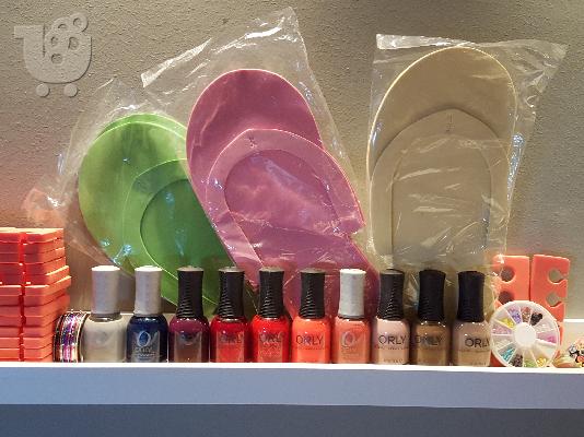 ΜΑΝΟ Orly απλά (10 τεμ. ) Ταινίες νυχιών (20 τεμ. ) Σχέδια νυχιών (36 τεμ. ) Σχέδια νυχιών φιογκάκια (12 τεμ. ) Σετ παντόφλες μιας χρήσεως (08 τεμ. ) Σετ διαχωριστικά ποδιών (15 τεμ. ) THΛ. ΕΠΙΚΟΙΝΩΝΙΑΣ 6939465555, τιμή 50€ 6939/465555, 09:00-22:00