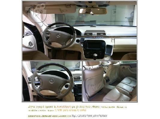 ΣΥΓΚΡΙΤΙΚΑ ΤΟ ΠΙΟ ΦΘΗΝΟ ΣΕ ΟΛΗ ΤΗΝ ΕΛΛΑΔΑ κατηγορια sedan τετρακινητο !! ΕΥΚΑΙΡΙΑ ΠΡΩΤΟ ΧΕΡΙ ΙΔΙΩΤΗΣ !!! S-class 350 4matic long μοναδικό στην αγορά ! Ένα από τα πιο ολοκληρωμένα παντός καιρού της κατηγορίας του στην Ελλάδα ! Α)στην ποιότητα designio ξύλο δέρμα (ανώτερο της ποιότητας της s600) Β) τετρακίνητο 4x4 φοβερό κράτημα στον δρόμο -τέλειο σε χιονισμένους δρόμους Γ)long έκδοση 12 εκατοστά πιο μακρύ Δ)roof monitor tv-ψυγείο στο σαλόνι Ε)από αντι/πεία Ιωαννίδηςβιβλίο σέρβις αντι/πείας άριστη κατάσταση,ειναι "κουκλι" ολοκαινουργιο φυλαγμένο σε γκαράζ & ανταλλαγή με gl-350,450 7θεσιο –ΜΠΕΖ ΔΕΡΜΑ δέχομαι να καταβάλω επιπλέον τίμημα. ή golf ή polo & cross Δείτε λεπτομέρειες στο SITE ...http://mercedess350l.wix.com/s-class ...Πληροφοριες στα τηλ. 2310.700.100-2310.317.100-6944.765.860