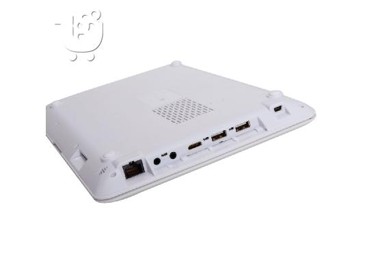 netbook TopTech χρώματος άσπρο με λειτουργικό android στο κουτί του με οθόνη LED 10'' οικογένεια cortex, χωρητικότητα 4GB,3G, Ethernet, HDMI, Wi-Fi,αυτονομία 3 ώρες, βάρος 0,675 kg.