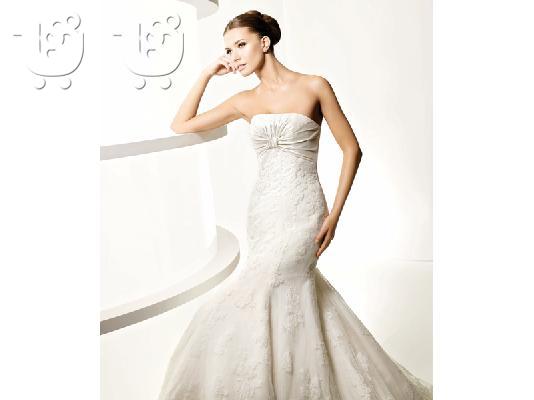 ΝΥΦΙΚΟ Pronovias La Sposa μοντ. 2010, χρώμα off white, ενιαίο κομμάτι, μπούστο σε μεταξωτό ταφτά, το υπόλοιπο δαντέλα, Νο 36 , φορεμένο μόνο την ώρα του μυστηρίου, καθαρό, με φουρό, τιμή 500 ευρώ, τηλ: 6945/151002