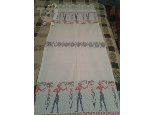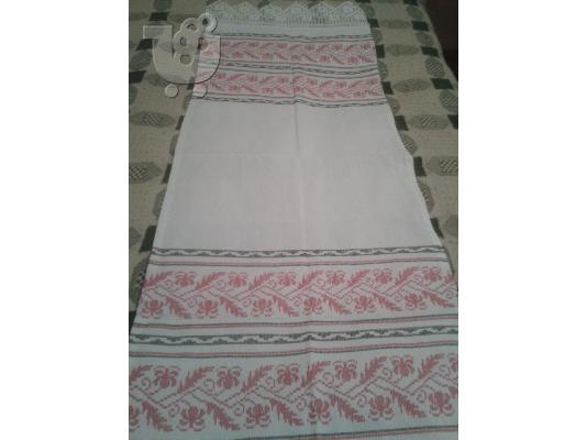 πετσέτες κεντημένες στο τελάρο με χειροποίητη πλεκτή δαντέλα