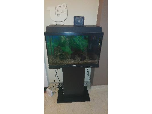 Πωλείται ενυδρείο Juwel Reκord 60 ltr με όλο τον εξοπλισμό (αντλία νερού, θερμοστάτη, αντλία αέρα, φίλτρα, αυτόματη ταίστρα) και τη βάση, συν διάφορα φάρμακα και αξεσουάρ. Μαζί με το ενυδρείο δίνονται και δύο ψάρια, ένα Platydoras Costatus και ένα Baryancis Golden nugget. Είναι ένα γατόψαρο και ένας γλύφτης και είναι και τα δύο ενήλικα ψάρια. Τηλ: 6947438049