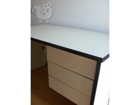 Πώληση: Γραφείο με τρία συρτάρια, διαστάσεων 138x71x77. Ξύλο λευκό. Τιμή 60 € (συζητήσιμη).