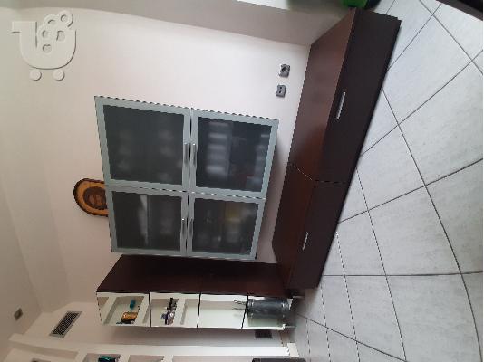 Πωλείται σύνθεση σαλονιού σέ άριστη κατάσταση περιλαμβάνει επιδαπεδια στήλη με καθρέπτες 170×41,κρεμαστη βιτρίνα 120×120 και μπουφέ 190×68