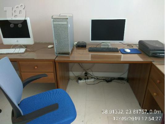 ΠΩΛΟΎΝΤΑΙ τα εξής (τιμή ανά τεμάχιο): - γραφείο 1 , 40 χ 80 και δύο γραφεία 1 , 20 χ 80 με συρτάρια - γραφείο 1 , 20 χ 80 με διπλά συρτάρια Όλα τα ανωτέρω είναι σε άριστη κατάσταση και περιλαμβάνουν προστατευτικό τζάμι στην άνω επιφάνεια. Με αγορά δύο γραφείων, παρέχεται γωνία 80 χ 80 (βλέπε φωτογραφίες) Επίσης οι δύο πρώτες αγορές γραφείων παίρνουν δώρο από μια καρέκλα (βλέπε φωτογραφίες)