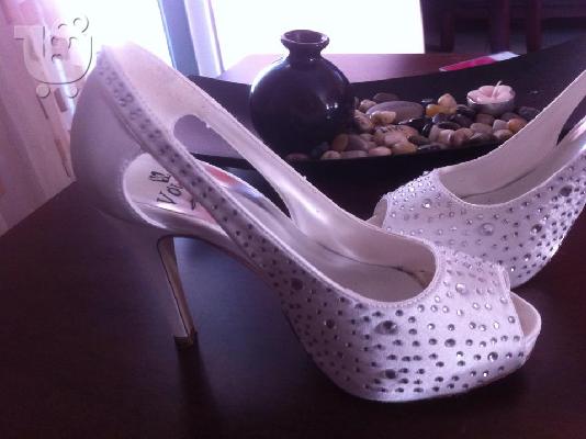 Νυφικά σατέν παπούτσια με στρας. Ολοκαίνουρια και φορεμένα μονάχα για δύο ώρες σε αρραβώνα, απολύτως βολικά. Τιμή αγοράς 30 ευρώ, τιμή πώλησης 20 ευρώ. 36 Νούμερο. Αποστολή σε όλη την Ελλάδα.