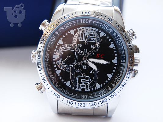 Καλαισθητικό ανδρικό ρολόϊ με μεταλλικό λουράκι που μπορεί να χρησιμοποιείται για ηχητική εγγραφή, φωτογραφίες ή ηχητικά-βίντεο αρχεία. Η ρύθμιση της εγγραφής είναι γρήγορη και εύκολη – μόνο με το πάτημα ενός κουμπιού, ενώ με το άλλο γίνεται η αλλαγή των λειτουργιών. Οι ηχητικές εγγραφές είναι σε WAV φορμάτ με 64 kbps. Αν επιθυμείτε να κάνετε μόνο φωτογραφία, αυτή θα γραφτεί σε μορφη JPEG με ανάλυση 1600х1200 pixel. Οι AV εγγραφές είναι σε AVI με 640х480 pixel και 30 λήψεις ανα δευτερόλεπτο. Η ενσωματωμένη επαναφορτιζόμενη μπαταρία ιόντων-λιθίου, επιτρέπει να κάνετε περίπου μιά ώρα αδιάκοπη εγγραφή. Η φόρτιση της μπαταρίας γίνεται με τον φορτιστή,συνδέοντας τον στην πρίζα που δεν είναι τύπου ασφάλειας,ή από την USB είσοδο του Η/Υ σας. Το ρολόϊ αναγνωρίζεται αυτομάτως απ’ όλα τα λειτουργικά συστήματα και δεν χρειάζεται εγκατάσταση των οδηγών για το σκοπό αυτό. Έχει ενσωματωμένη μνήμη των 4 GB.