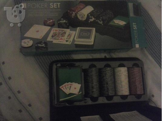 πουλάω σέτ για πόκερ που περιέχει τράπουλες και μάρκες,βρίσκονται σε άριστη κατάσταση,για περισσότερες πληροφορίες θα στείλετε εμαιλ στο mahipapazoglou16@gmail.com για να σας λύσω οποιαδήποτε απορία.Δίνεται μαζί με το κουτί του.