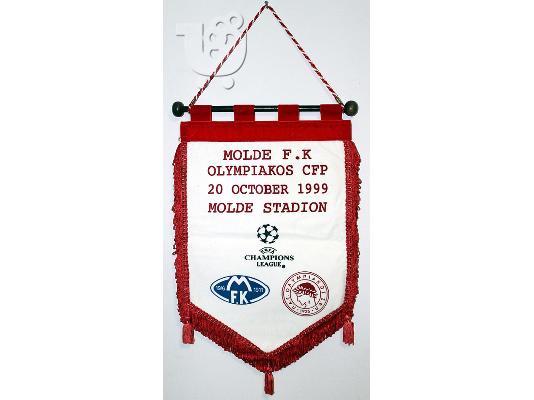 Από προσωπική συλλογή, λάβαρα ανταλλαγής της ομάδος του Ολυμπιακού σε αγώνες του Champions League από το 1997 έως 2003. Για κάθε αγώνα κατασκευάστηκαν μόνο 30 τεμάχια πολυτελούς μοναδικής κατασκευής για τις ανάγκες της ομάδος. Διαστάσεις 30x40 cm. Αποστολή με Ελτα ή Κτελ αντικαταβολή Τηλ: 2394111438 / Κινητά: 6984187884/6949031567