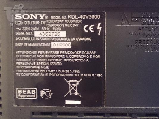 Τηλεόραση Sony bravia, διαγώνιος 40', μοντέλο kdl40v3000, σαν καινούρια δεκτός ελεγχος.