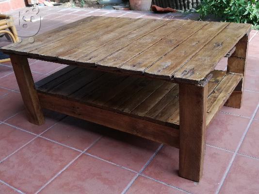 Τραπέζι μέσης χαμηλό, 1μ μήκος Χ 70 εκ πλάτος Χ 45 εκ ύψος. Ξύλο μασίφ, χρώμα καστανό, στοιβαρή κατασκευή.