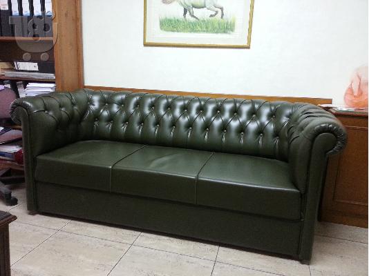 ΤΡΕΙΣ χειροποίητοι δερμάτινοι καναπέδες χρώματος σκούρου κυπαρισσί τύπου Chesterfield πωλούνται είτε ως σετ είτε μεμονωμένα. Οι καναπέδες βρίσκονται σε άριστη κατάσταση και έχουν τις παρακάτω διαστάσεις: - Τριθέσιος καναπές, 1,85 x 0,82 (μεμονωμένη τιμή 500 ευρώ) - Διθέσιος καναπές, 1,40 x 0,82 (μεμονωμένη τιμή 400 ευρώ) - Διθέσιος καναπές, 1,40 x 0,82 (μεμονωμένη τιμή 400 ευρώ) Οι καναπέδες αγοράστηκαν ως σετ προς 2000 ευρώ και πωλούνται ως σετ προς 1100 ευρώ. Η μεμονωμένη πώληση τους είναι εφικτή στις τιμές που αναγράφονται στην περιγραφή των διαστάσεων τους. Τηλέφωνο επικοινωνίας: 6972863136 , κυρία Άννα, τιμή 1.100€