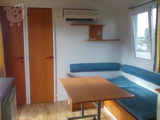 Εξαιρετικής κατασκευής τροχοβίλα βαρέως τύπου τεσσάρων εποχών διαστάσεων 8 χ 3 με αυξημένες μονώσεις, κουφώματα pvc με διπλά τζάμια , ανακλήσεις και σίτες για τα έντομα.Δύο υπνοδωμάτια,μεγάλη κουζίνα εξοπλισμένη με εστία υγραερίου,απορροφητήρα ,ψυγείο.Μπάνιο με καμπίνα ντους ,ταχυθερμοσίφωνο υγραερίου,σαλόνι με άνετο καναπέ που γίνεται διπλό κρεβάτι ,άριστη κατασκευή και σε τιμή προσφοράς 10900 ευρω.\r\nΔυνατότητα μεταφοράς σε όλη την Ελλάδα με πολύ λογικό κόστος.