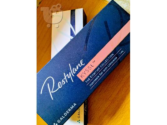 Υαλουρονικά για χείλη και πρόσωπο Πωλούνται σφραγισμένα στο κουτί τους, υαλουρονικά για χείλη και πρόσωπο της εταιρείας Galderma. 3 x Restylane Lidocaine 1 mL 1 x Restylane Kysse 1 mL Η τιμή είναι 80 ευρώ για κάθε ένα. Για το σύνολο (4 τεμάχια) η τιμή είναι 300 ευρώ.