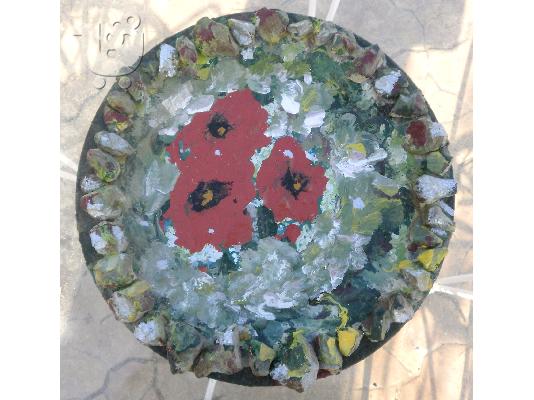 χειροποίητο διακοσμητικό πιάτο τοίχου με λουλούδια και πετραδάκια διαστάσεων 30 cm της συγγραφέως και ζωγράφου Μαρίας Παυλίδου Τασοπούλου